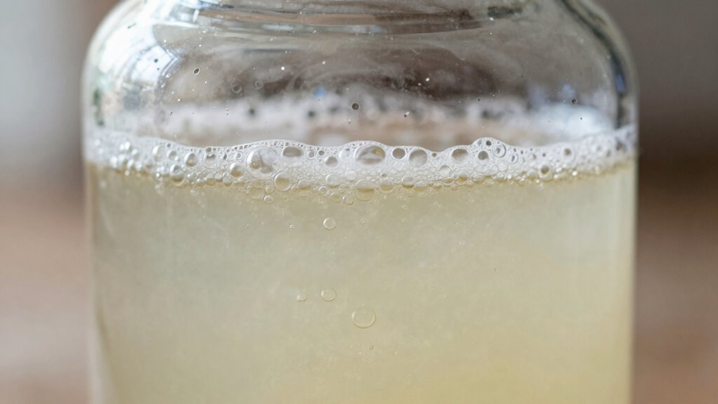 Visible mold or off-white films on your fermentation are clear warning signs that it’s time to toss it out. Mold development often appears as fuzzy patches or surface discoloration that differs from the expected fermentation surface. These growths can indicate contamination and pose health risks. Even if the mold is only in one spot, it’s safest to discard the entire batch, as mold spores can spread beyond visible areas. Off-white films might seem harmless, but they can also signal undesirable surface changes or bacterial activity. Trust your senses—any unusual surface discoloration or fuzzy patches mean your fermentation isn’t safe to consume. When in doubt, it’s better to discard and start fresh than risk consuming contaminated or spoiled product.