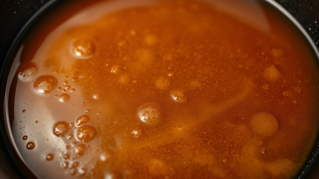 Finally, strain your gravy through a fine-mesh sieve if you notice any stubborn lumps or unevenness. This step might seem extra, but it guarantees the ultimate smoothness and ensures your gravy is perfectly silky. With a bit of practice and attention to detail—focusing on texture enhancement and proper thickening techniques—you’ll consistently create gravy that’s rich, flavorful, and irresistibly smooth. No more clumps, just perfect, velvety sauce every time.