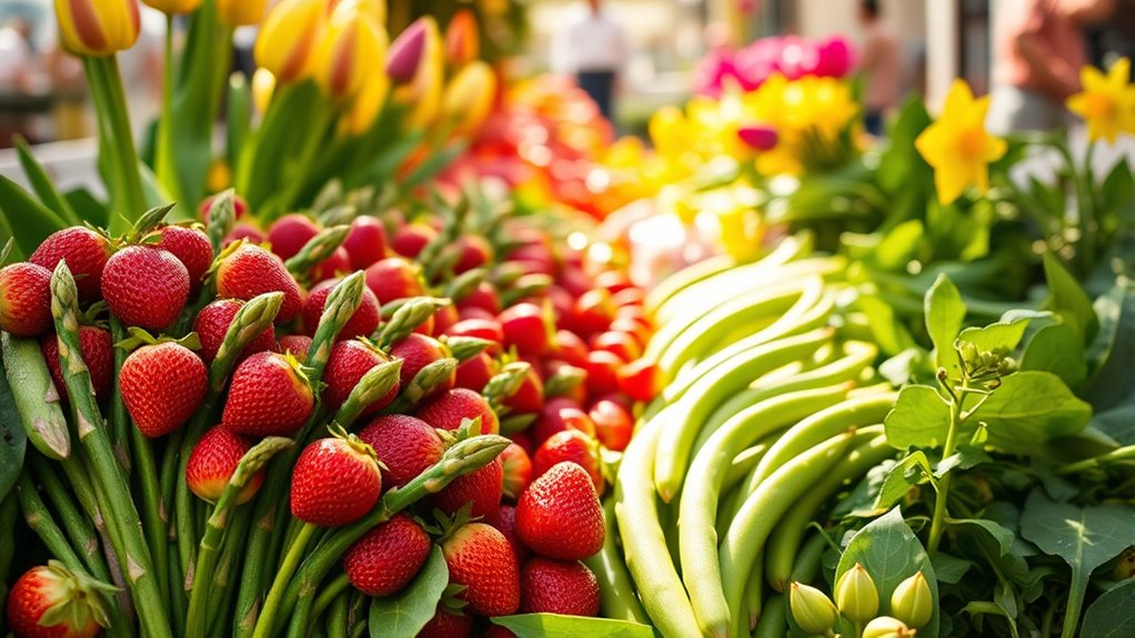 As you embrace spring’s bounty, remember it’s like tending a garden—you reap what you nurture. Just last year, I discovered that eating seasonal strawberries not only boosted my flavor experience but also supported local farmers. By choosing these peak fruits and vegetables, you’re weaving a vibrant tapestry of health and sustainability. So, go ahead—pick what’s in season, savor every bite, and let nature’s rhythm guide your meals this spring.