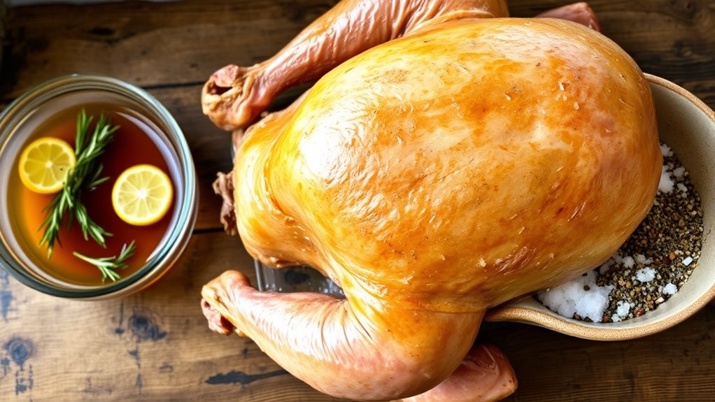 Brining your turkey is one of the best ways to guarantee a juicy, flavorful centerpiece for your Thanksgiving feast. When you choose to brine, you’re essentially soaking the bird in a solution that helps it retain moisture and absorb delicious flavors. The key to successful brining lies in understanding how flavor infusions work through different methods and how brine timing impacts the outcome. Whether you opt for a dry or wet brine, each approach offers distinct advantages, but both rely heavily on proper flavor infusion and timing to achieve the best results.