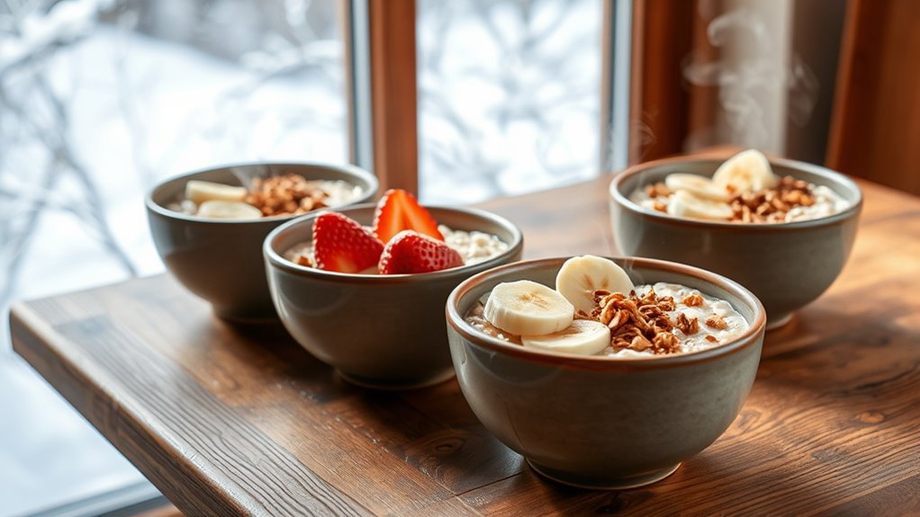 In the end, your oatmeal isn’t just a meal; it’s an opportunity to enjoy a warm, nourishing start to your winter mornings. By choosing the right healthy toppings and flavor combinations, you guarantee each bowl is both comforting and nutritious, helping you face the day with energy and comfort.