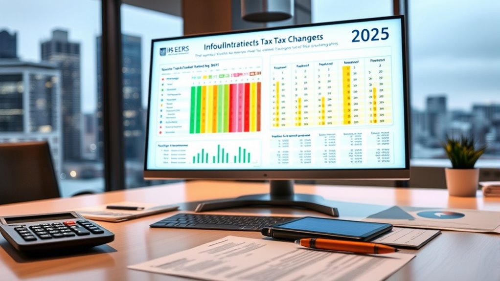 In 2025, the IRS updates tax brackets and deductions to reflect inflation and improve fairness. The seven federal rates now start at 10% and go up to 37%, with income thresholds slightly adjusted downward. The standard deduction stays at 2024 levels, but extra deductions are available for those 65+ with income limits. SALT deduction caps also change, easing burdens for many taxpayers. To understand how these updates could impact you, keep exploring what’s new.