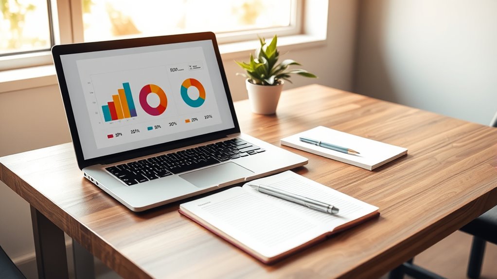 Did you know nearly 60% of people make budget missteps? When applying this rule, common spending pitfalls include overestimating income, failing to track expenses, and neglecting savings. You might also cut too much from essentials or overspend on wants, leading to financial stress. To avoid these mistakes, stay realistic, monitor your spending regularly, and adjust your categories as your income fluctuates. This keeps your budget balanced and achievable.