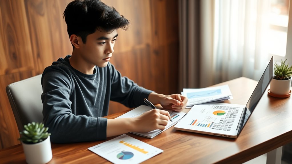 To build credit from scratch, start by opening a secured credit card with a deposit that acts as your credit limit. Use it for small purchases and pay off the balance in full each month, keeping your utilization below 30%. Consider a credit-builder loan and gradually add more responsible accounts. Make all payments on time, monitor your credit reports regularly, and stay consistent. Keep going, and you’ll discover more ways to strengthen your financial foundation.