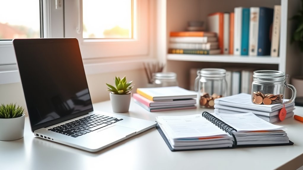 You can set effective financial boundaries by implementing budgeting strategies that allocate specific amounts for expenses and savings. Regularly review your budget to stay accountable and adjust as needed, ensuring you don’t overspend. Communicate your financial goals with trusted friends or family to build accountability. These practices help you maintain control over your spending, prevent lifestyle creep, and keep your financial health on track.