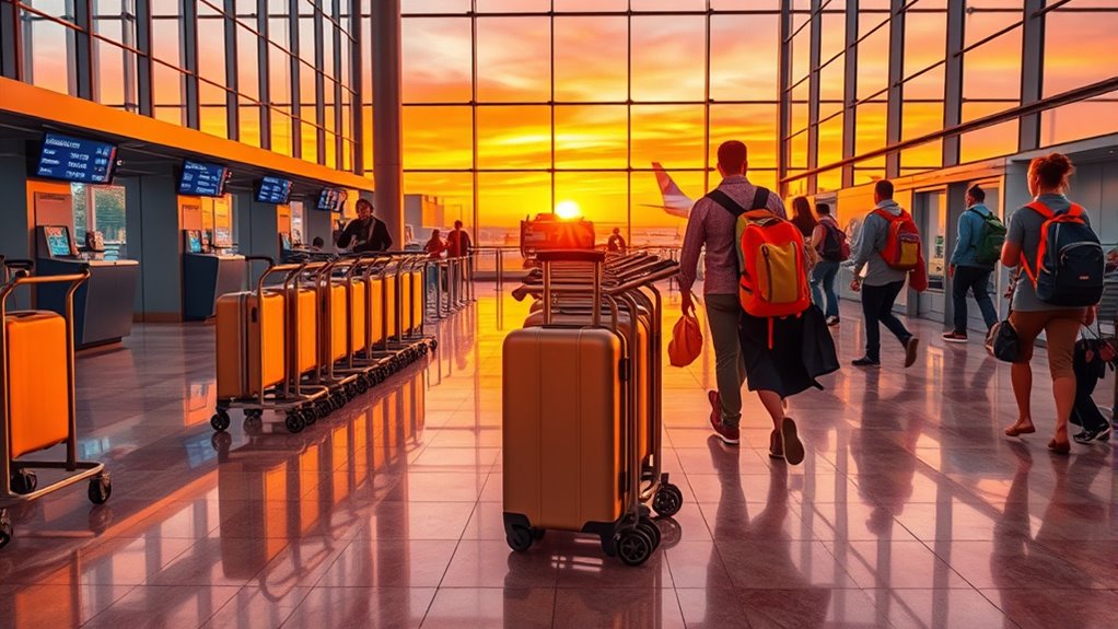 To beat high airfare and hotel costs in 2025, start by booking early and flexible travel dates to find lower prices. Use price comparison tools and consider off-peak seasons for savings. Opt for budget accommodations like hostels or Airbnb, and explore local transportation options such as public transit or city passes. Cutting dining expenses and seeking discounts through travel rewards can also help. Stick with these tips, and you’ll discover more ways to make your trip affordable.
