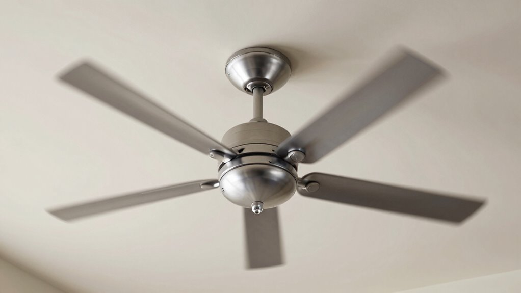 Did you know that in rooms over 10 feet high, a ceiling fan with larger blades can enhance airflow by up to 15%? When choosing a fan, consider ceiling height considerations—higher ceilings often need fans with longer blades for effective circulation. Also, decorative blade designs can add style without sacrificing function. You’ll want a larger fan for tall ceilings to ensure both comfort and aesthetic appeal.