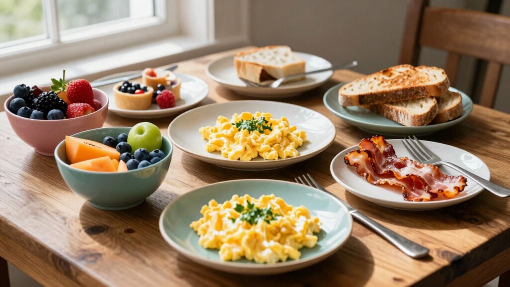 Imagine a warm kitchen filled with the aroma of freshly baked muffins and sizzling eggs. You can create budget-friendly batch breakfasts using cost-effective ingredients like oats, eggs, and frozen berries. These versatile recipes save time and money, allowing you to prep hearty granola bars, veggie-filled frittatas, or overnight oats ahead of time. With simple staples, you’ll enjoy nourishing, delicious mornings without breaking the bank.