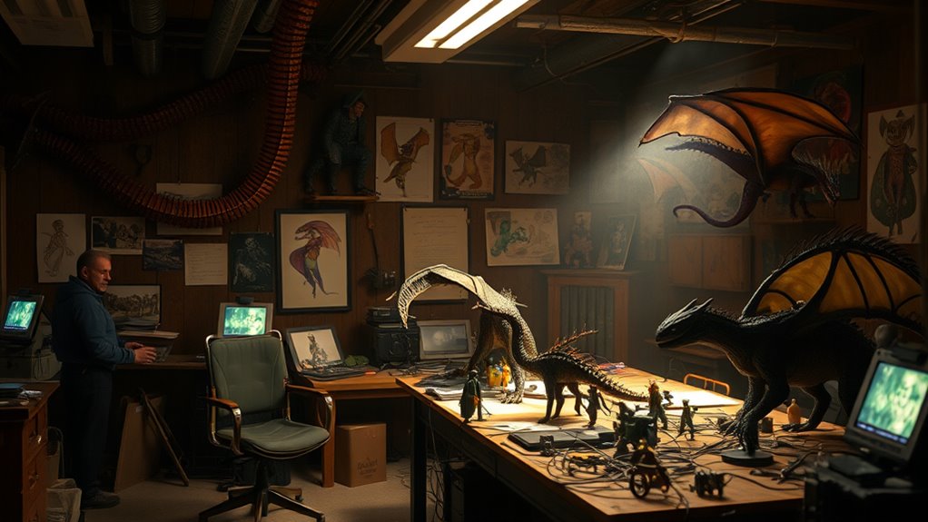 On the set of “How to Train Your Dragon,” expert craftsmanship brought the world to life through practical set construction and detailed puppetry. You’ll discover that real stone elements and custom-built dragon puppets helped actors interact naturally with the dragons. Advanced rigs simulated flight, blending physical effects with CGI for realism. If you keep exploring, you’ll uncover how these techniques combined to create the immersive, magical experience fans cherish today.