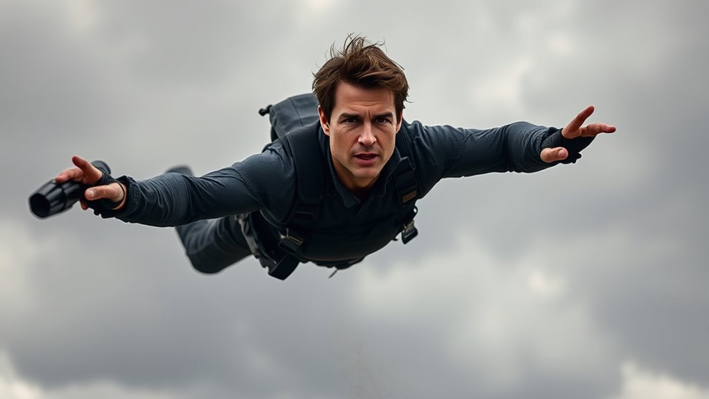 At 63, you might think stunt work would be out of reach, but Tom Cruise defies expectations through intense training, disciplined nutrition, and first-rate safety measures. He stays in peak condition with diverse activities like fencing, climbing, and running, ensuring agility and strength. His commitment to performing his own stunts maintains authenticity and safety, inspiring many. Keep exploring how he keeps such a high level of performance, as there’s more to discover behind his incredible stamina.