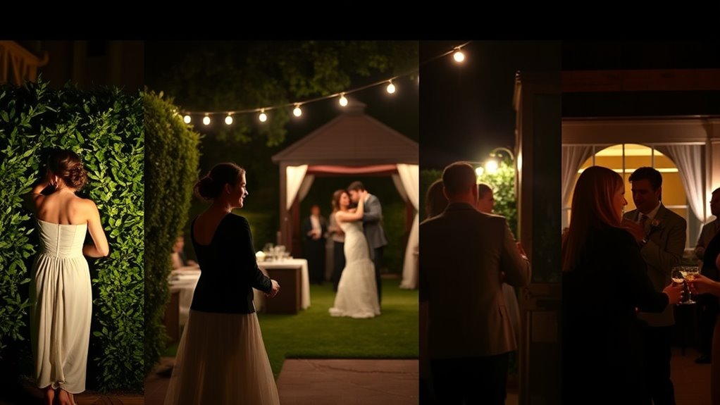 You can conceal your wedding by choosing secluded locations like private beaches or your backyard, avoiding public access. Keep your guest list intimate, inviting only close family and friends, and send discreet invitations or personal updates. Control media exposure by not sharing real-time updates, using NDAs with vendors, and limiting photography. Planning with discreet experts and scheduling during off-peak times further helps maintain privacy and prevent leaks.