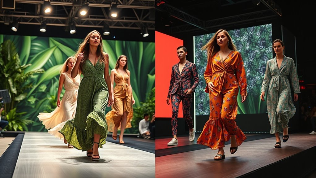 As you stand at the crossroads of fashion’s future, imagine a world where vibrant, eco-friendly fabrics dance with sunlight, replacing the dull hum of fast fashion’s churn. The choice is yours—embrace sustainability’s lush, green horizon or stay caught in the whirlwind of fleeting trends. With every decision, you shape a runway that’s brighter, cleaner, and more alive. The runway of 2025 awaits your step—will you walk into a sustainable masterpiece or a fleeting, fast-paced illusion?