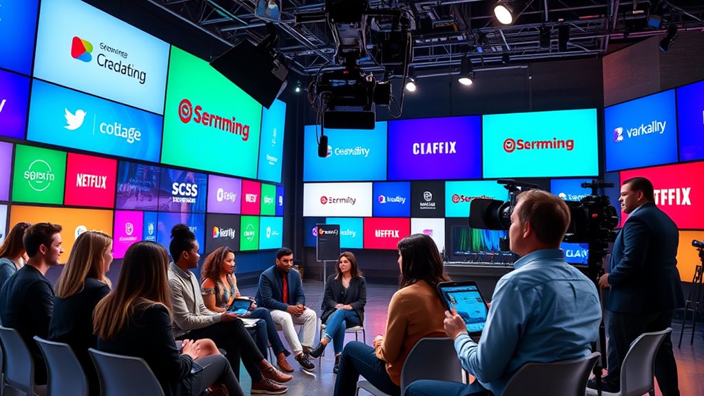 This shift also influences how TV shows are made. Streaming services invest heavily in global productions, leveraging their broad subscriber bases across regions like Asia Pacific, led by India and China, and North America, which dominates revenue with about USD 50.66 billion expected in 2025. These platforms seek content that appeals across cultures, leading to more inclusive and multicultural casting choices. You’ll notice that casting decisions now lean toward actors with international appeal, aiming to attract and resonate with a broad spectrum of viewers. Streaming platforms are also emphasizing diversity and representation, reflecting social trends and subscriber demographics. This means you’ll see more multilingual and multicultural casts, tailored to specific markets and personal preferences, making shows more relatable and engaging for global audiences. Additionally, the use of data-driven insights from streaming platforms influences decisions about greenlighting projects, helping producers identify niche markets and customize content. These insights also support the trend toward inclusive casting, which broadens the appeal of shows across different demographics. Moreover, the integration of advanced analytics helps streamline production processes and optimize content strategies to better meet viewer demands. Furthermore, the increased competition among streaming platforms has led to higher investments in original programming, ensuring a steady stream of innovative content.