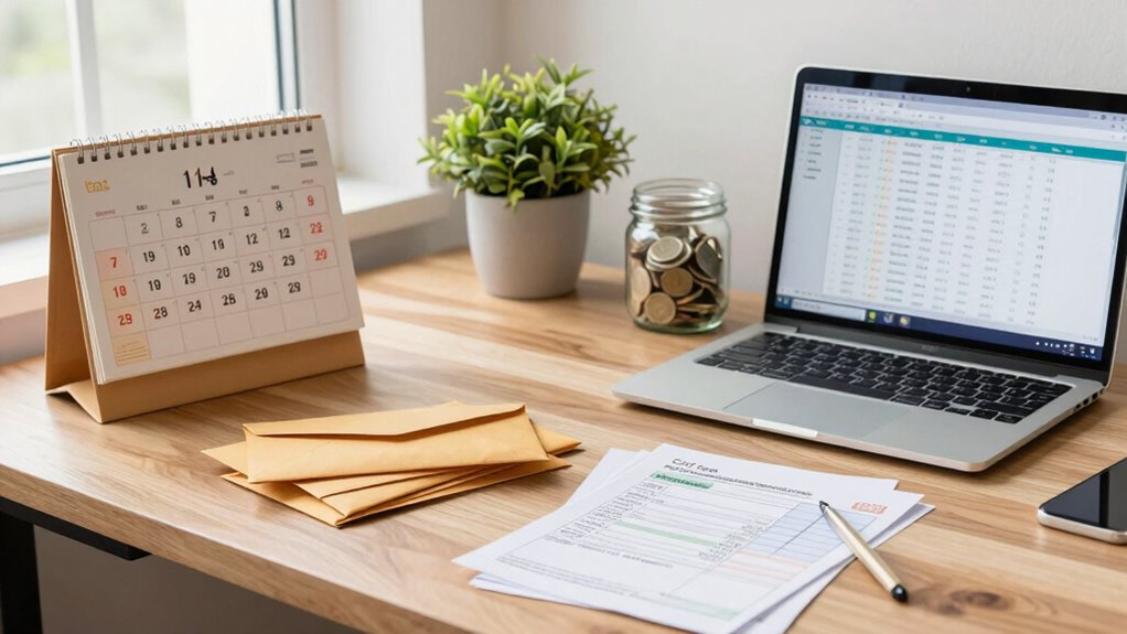 You should review and update your bills buffer at least once a month during your regular budget planning. This keeps your financial discipline strong and guarantees your buffer stays aligned with any changes in your expenses or income. Regularly reassessing helps you catch discrepancies early, maintain peace of mind, and prevent stress when due dates approach. Make it a habit, and your bills buffer will serve you reliably.