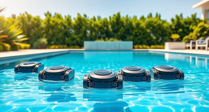 Never miss the top energy-efficient pool cleaners that combine power, smart features, and savings—discover which ones will keep your pool sparkling and save energy.