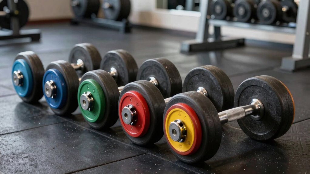 An easy-to-use adjustment mechanism is essential for maintaining workout momentum and safety. I look for systems like twist dials or one-second switches that let me change weights quickly without fuss. Clear, visible indicators are a big plus—they help me verify the selected weight instantly, avoiding mistakes. Smooth, noiseless adjustments keep my workout flowing, especially at home where noise can be disruptive. I also prioritize mechanisms built from durable materials, so they don’t wear out or become difficult to operate over time. Locking features are helpful, but the ease of adjustment itself is what really keeps me motivated and focused. When I can switch weights effortlessly, I stay in the zone and get the most out of my training sessions.