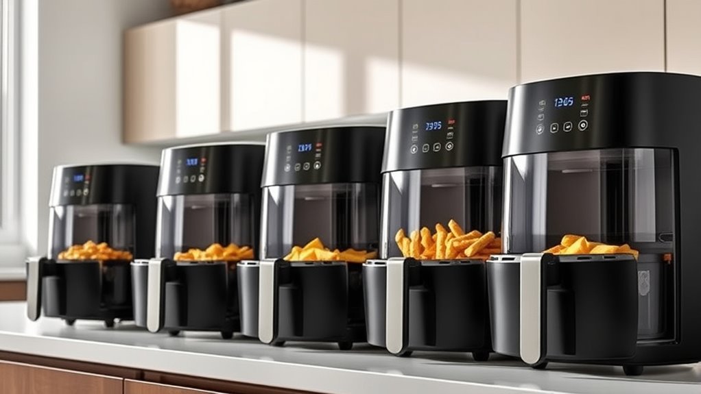 Finding the right air fryer feels like assembling a family puzzle—each piece must fit perfectly. I remember hosting a big dinner, and my large-capacity air fryer saved the day, making meal prep smooth and stress-free. With options like the Ninja DoubleStack or Emeril’s French Door, you’re not just buying an appliance; you’re investing in countless joyful gatherings. Choose wisely, and you’ll turn everyday cooking into a warm, shared celebration.