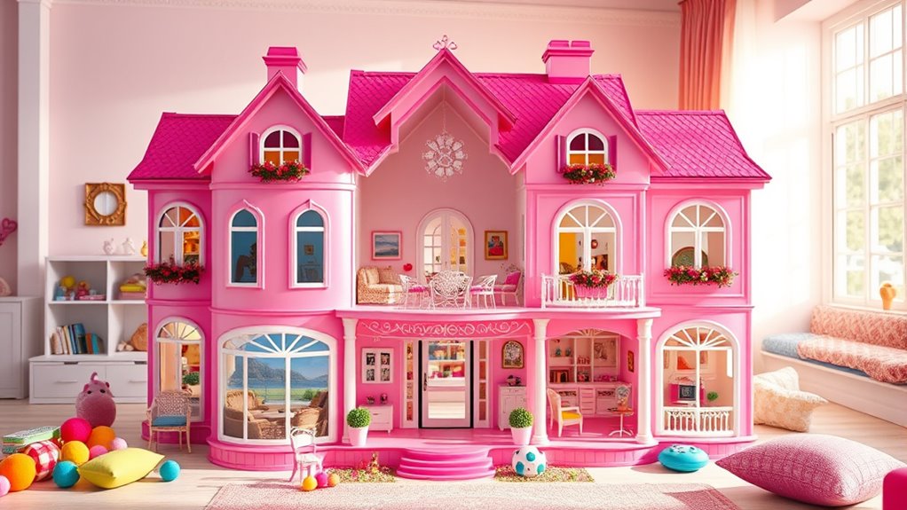 If you’re searching for the best Barbie Dreamhouse deals of 2025, I’ve found top options that combine size, features, and value. From Chelsea dollhouses with accessories to large multi-story sets with elevators and pools, there’s something for every budget and space. Themes like holiday ornaments and compact playsets also make great gifts. Stick around to discover the most exciting deals and how they can spark endless imagination for kids.