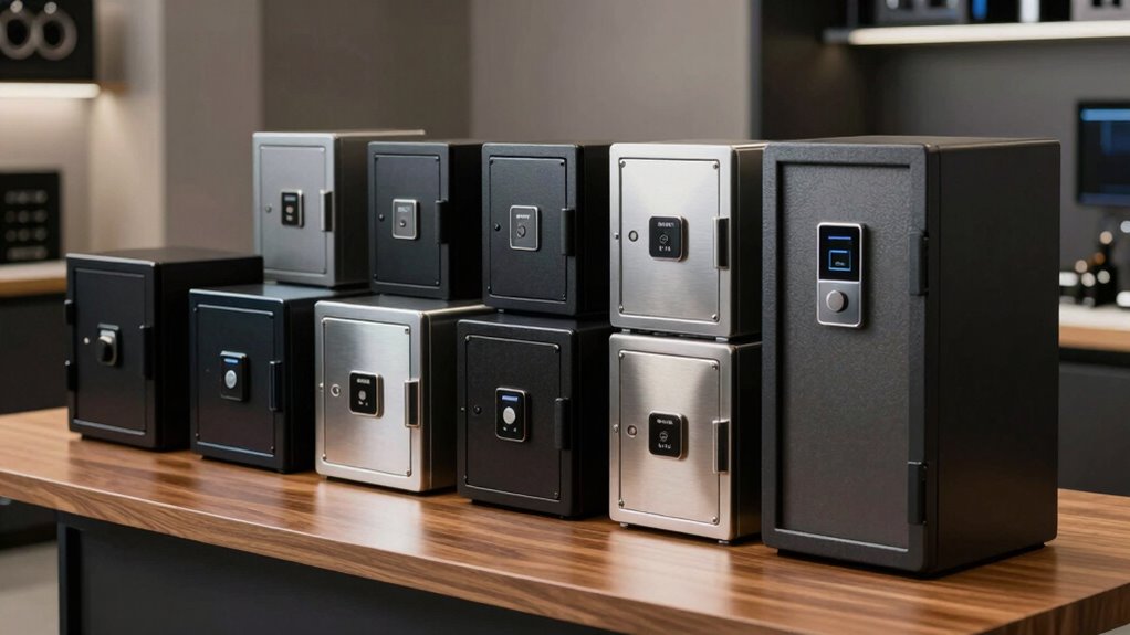 To guarantee reliable access and maximum security, it’s vital to seek safes that offer multiple unfastening methods, such as biometric fingerprint recognition, digital keypads, and emergency keys. High-resolution fingerprint scanners that recognize prints in under 0.1 seconds ensure quick access during emergencies. A biometric system supporting 30 to 40 fingerprints allows multiple users without hassle. Security features like anti-pry construction, tamper alarms, and shake detection prevent unauthorized attempts. Backup access options, including PIN codes or mechanical keys, are essential if biometrics fail or batteries run out. These features work together to provide peace of mind, ensuring your valuables stay secure while remaining accessible when needed. Prioritizing extensive security features helps you choose a safe that’s both reliable and resilient.