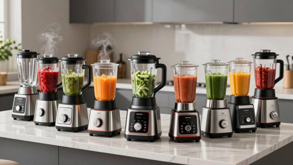 If you’re looking for the best blenders for hot soups and smoothies in 2026, I’ve got you covered. Top models combine powerful motors, heat-resistant materials, and easy-clean features to handle tough ingredients and hot liquids safely. Preset programs and versatile functions make blending effortless, while safety features keep you protected. If you want reliable performance in your kitchen or commercial space, continue exploring—I’ll share detailed options and insights soon.