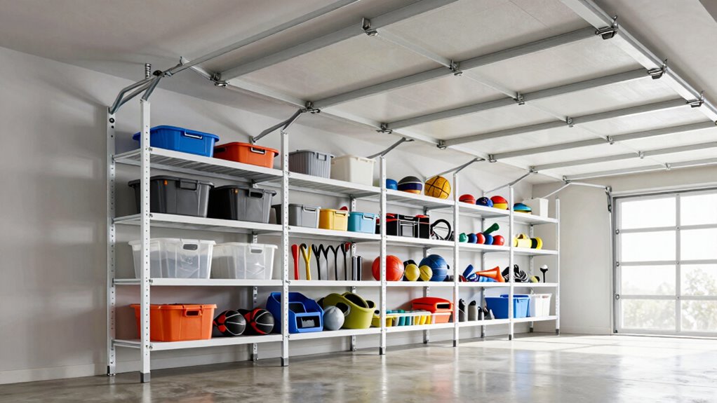 Choosing the right ceiling-mounted garage storage rack is like finding the perfect puzzle piece—it completes your space perfectly. With options ranging from FLEXIMOUNTS’ versatile designs to adjustable kits, you can maximize your storage and keep clutter at bay. Just remember to contemplate your ceiling height, weight capacity, and accessibility. Once you find the right fit, your garage will feel as organized as a well-orchestrated symphony—smooth, efficient, and clutter-free.