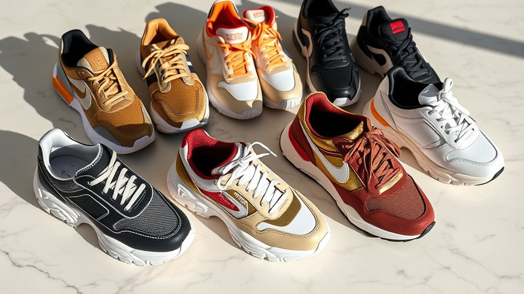 When selecting designer sneakers, understanding their price and value is essential to making a smart investment. Designer sneakers typically range from $80 to over $500, so knowing your budget helps you find options that are both affordable and worthwhile. Higher-priced sneakers often use premium materials like genuine leather and advanced cushioning, which justify the cost through enhanced comfort and durability. Comparing features such as longevity, style, and comfort across different price points can reveal the best overall value. Limited editions or collaborations may have higher prices but can offer exclusivity and better resale potential. Additionally, hunting for sales, discounts, or outlet deals can make high-end sneakers more accessible, maximizing your investment without sacrificing quality or style.
