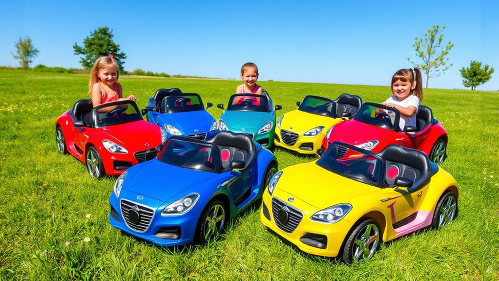If you’re looking for the best electric ride-on cars for toddlers in 2025, I’ve found options that combine realistic vehicle designs, safety features, and outdoor durability. These vehicles have powerful motors, safety controls, and fun extras like lights and sounds, making them perfect for outdoor adventures. Whether you want licensed trucks or stylish jeeps, there’s something for every young rider. Keep exploring to find out more about these exciting options and how they could suit your child’s playtime.