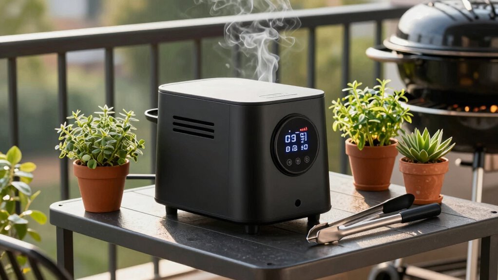 Choosing the right electric smoker makes all the difference for balcony grilling—did you know that electric smokers are 30% more energy-efficient than traditional models? Whether you prefer a compact vertical design or a larger capacity, there’s an option that fits your space and flavor needs. With the right choice, you’ll enjoy delicious smoked foods right at home, all while keeping your apartment environment safe and smoke-free. Happy smoking!