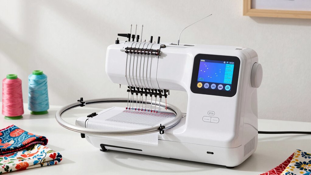 I regularly clean and oil my large hoop embroidery machine to keep it running smoothly. I also check the tension and make certain the bobbin is correctly wound. It’s important to remove lint and dust from the bobbin area and needles after every few projects. Additionally, I update the software and inspect the drive belts for wear. Proper maintenance extends the machine’s lifespan and guarantees consistent, high-quality embroidery results.
