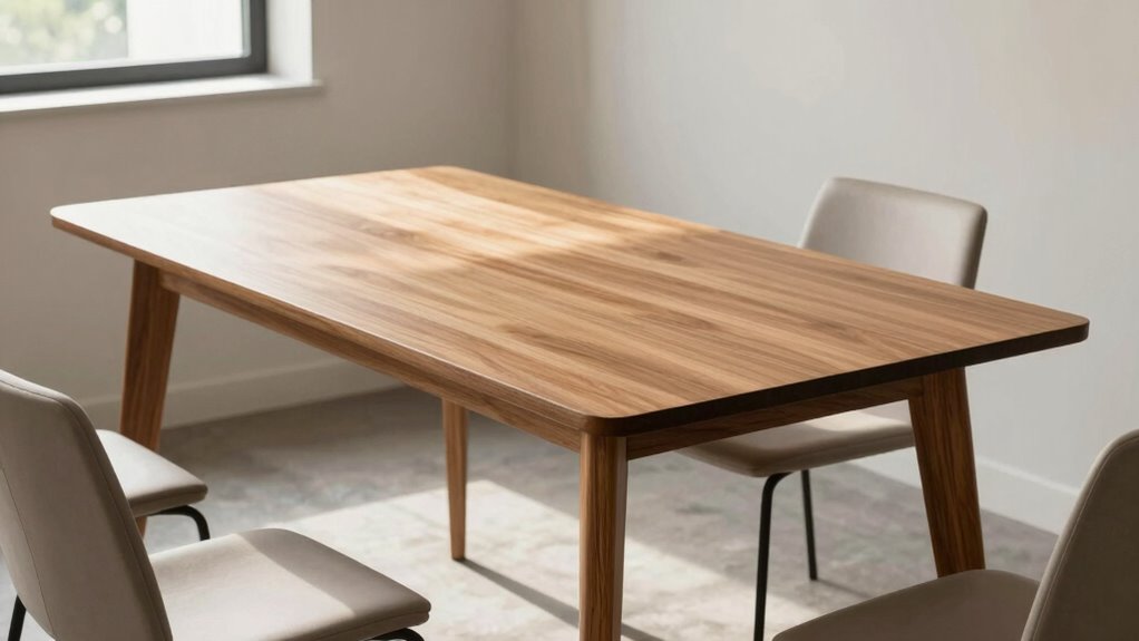 Material durability plays a crucial role in selecting an extendable dining table, especially for small spaces where frequent use is common. I look for tables made from solid woods like rubberwood or plywood, as they tend to resist scratches, stains, and daily wear better than MDF or engineered options. A waterproof and stain-resistant finish is essential to keep the table looking new despite spills. Reinforced support structures, such as metal frames or thick legs, boost stability and prevent wobbling over time. High-quality materials ensure the table stays sturdy and maintains its aesthetic appeal even with regular use. Ultimately, choosing durable materials means I invest in a piece that endures, looks great, and handles the demands of small space dining.