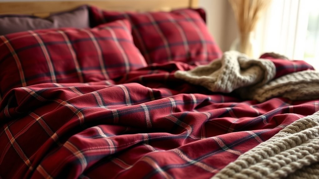 Like a trusty Swiss Army knife, flannel sheets can adapt to various climates. In colder weather, I layer them with blankets for extra warmth, while in warmer months, I use lighter sheets to stay cool. Their breathability helps regulate temperature, making them versatile for different seasons. So, yes, with a little layering or lightening up, you can enjoy flannel year-round, no matter where you live.