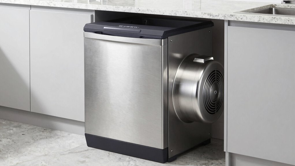Imagine a sleek, humming machine quietly working away in your sink—powerful garbage disposals come with safety features like overload protection, which automatically shuts off the motor if it overheats or jams. Many also include splash guards to prevent splatters, and anti-jam mechanisms that release stuck debris safely. Some have reset buttons for easy restart, giving you peace of mind while handling everyday kitchen waste confidently and safely.