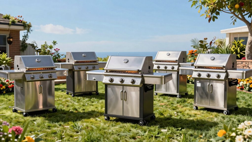 If you’re looking for the 15 best outdoor gas grills for 2026, I’ve explored the top options with great features like powerful BTU ratings, versatile cooking zones, durable materials, and easy cleanup. Whether you want portable models or built-in island setups, there are choices for every outdoor chef. Keep going to find out which grills stand out for performance, convenience, and lasting quality to elevate your grilling game this year.