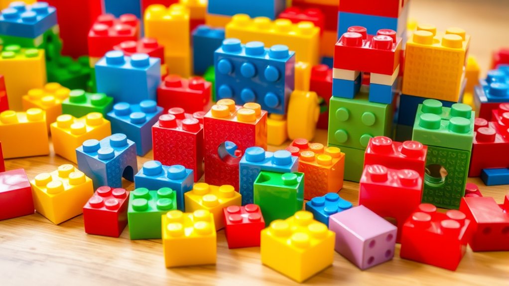 Different building block sets support developmental milestones by encouraging fine motor skills, hand-eye coordination, and spatial awareness. I’ve noticed that sets with varied shapes and sizes challenge toddlers to improve their grasp and dexterity. Some include color and shape sorting, which boost cognitive skills and early problem-solving. By choosing sets tailored to their age, I can help my child develop these vital abilities while having fun and exploring their creativity.