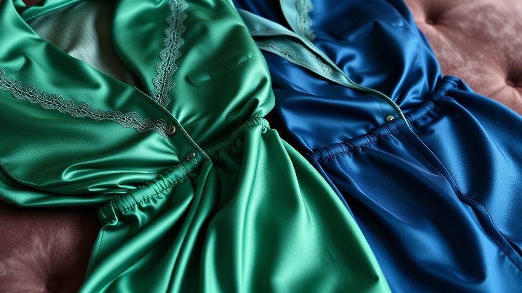 Choosing the right silk pajama set means balancing quality and cost to get the best value. Higher-quality silk sets may come with a higher price tag, but they offer superior durability, resist pilling, and stay soft longer. Investing a bit more upfront often pays off, as these garments maintain their shine and structure even after many washes. Cheaper silk or satin blends tend to fade quickly, develop holes, or lose their luxurious feel, making them less cost-effective over time. To find the right balance, consider fabric quality, stitching, and care instructions—these factors influence how long your pajamas will last. Proper maintenance, like gentle washing and avoiding high heat, further extends their lifespan and protects your investment in comfort and elegance.