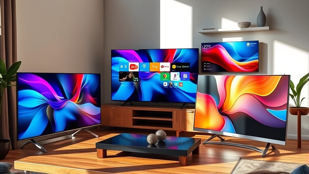 Premium smart displays boost home security by offering clear video feeds, real-time alerts, and seamless integration with security systems. I can monitor my home remotely, receive instant notifications of unusual activity, and even communicate through two-way audio. With features like facial recognition and smart doorbell integration, I feel more confident that my home is protected, all while easily controlling everything from a sleek, user-friendly interface.