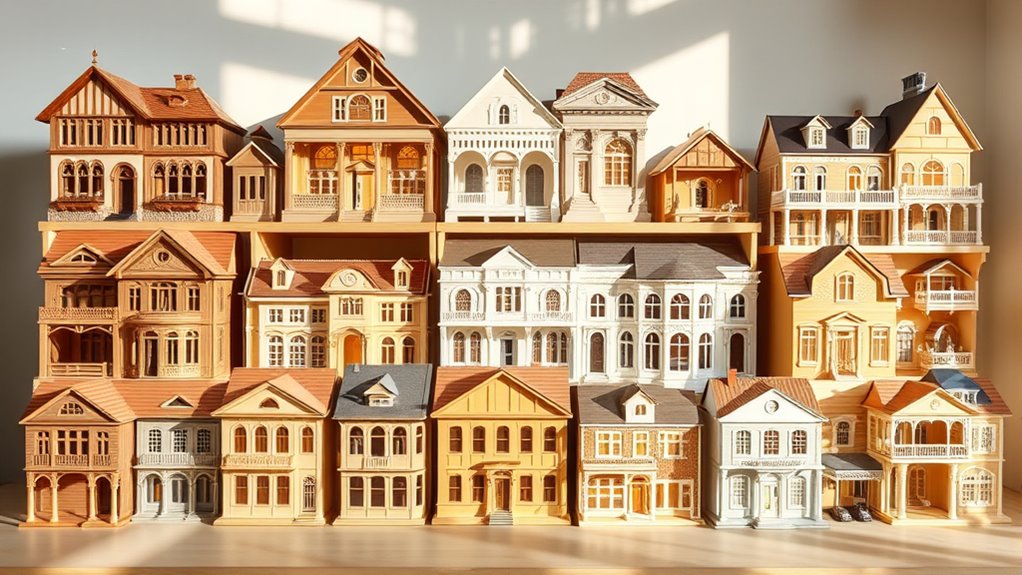 If you’re searching for the 15 best premium wooden dollhouse sets that balance style and quality, I’ve got you covered. These sets feature beautiful designs, durable materials, and engaging details like movable furniture, realistic accessories, and multiple rooms for creative play. They’re crafted from safe, high-quality wood with thoughtful safety features. Whether you want modern, traditional, or minimalist styles, these options suit various tastes and spaces. Keep exploring to discover more details about each standout set.