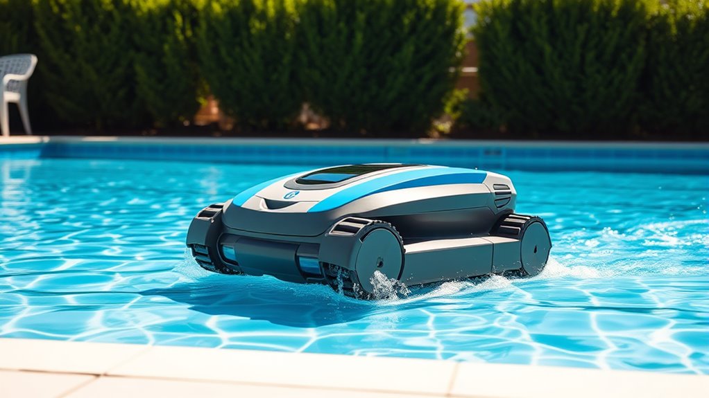 If you’re looking for the 15 best pressure pool cleaners of 2025, I’ve got you covered. From reliable models like Polaris MAXX and Vac-Sweep series to newer options like AIRROBO and MAKHOON, you’ll find cleaners that handle floors, walls, and waterlines efficiently. Many are easy to install and maintain, offering great durability and coverage. Keep going and you’ll discover detailed insights to help you pick the perfect cleaner for your pool.