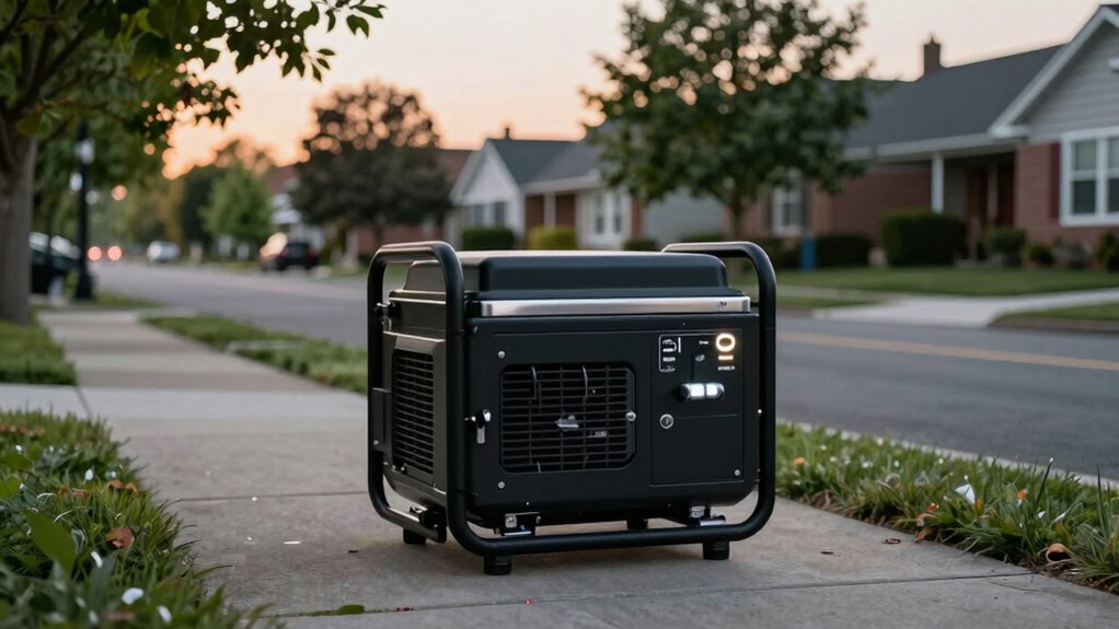 Choosing a quiet generator for neighborhood use means paying close attention to its noise level, which is measured in decibels (dBA). Generally, generators intended for residential areas operate at or below 60 dBA, roughly the sound level of normal conversation. The EPA recommends keeping noise emissions under 60 dBA to reduce noise pollution. Noise levels are typically specified at a distance of 23 feet, since sound diminishes with increased distance from the source. It’s also important to check local regulations or homeowner association rules, as many enforce specific noise limits during certain hours. Ensuring your generator meets these standards helps you avoid potential fines and keeps your neighborhood peaceful. Always verify the decibel ratings before making your choice to ensure compatibility with community noise standards.
