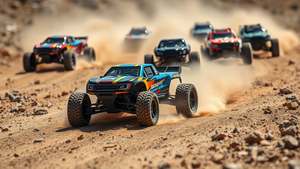 Speed and power are key factors that can make or break your experience with remote control cars and trucks. The speed, measured in km/h or mph, varies widely—from beginner models hitting 10-20 km/h to advanced ones exceeding 50 km/h. The type of motor, brushed or brushless, greatly influences both speed and acceleration; brushless motors are typically faster and more efficient. Power, determined by horsepower and torque, affects how quickly your vehicle accelerates and maintains high speeds across different terrains. Upgrading batteries with higher voltage or capacity can boost speed and extend runtime. Additionally, the drivetrain design, including gear ratios and whether the vehicle is 4WD or 2WD, controls how effectively power reaches the wheels, impacting both top speed and climbing ability.