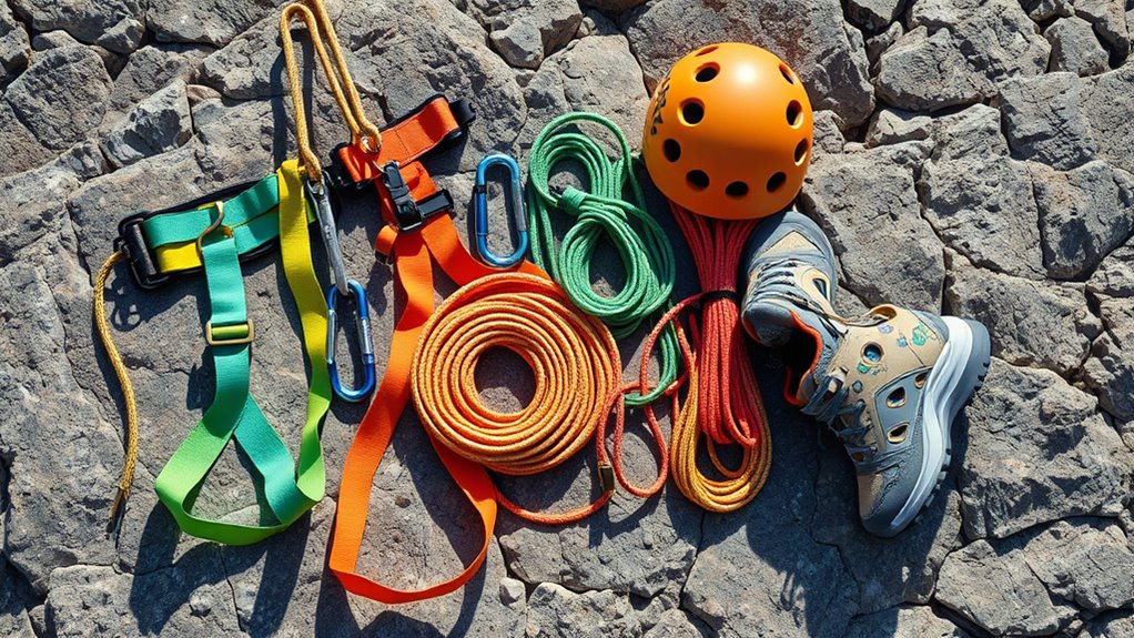 If you’re looking for the best rock climbing gear bundles in 2025, I’ve got you covered. From chalk bags and quickdraw storage to colorful climbing stickers and durable holds, there’s a set for every level. Whether you’re just starting out or an experienced climber, these bundles focus on safety, organization, and personalization. Keep going, and you’ll discover great options that fit your needs and enhance your climbing adventures.