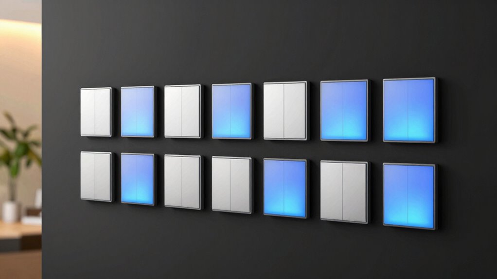 App control features considerably enhance how you interact with your smart switches, offering the convenience of managing your lighting from anywhere using your smartphone or tablet. With these features, you can turn lights on or off remotely, which is perfect for when you’re away or want to adjust settings without getting up. Many switches support scheduling and timers through their apps, allowing you to automate lighting based on your routine. Compatibility with smart home ecosystems like Alexa, Google Assistant, or Apple HomeKit depends on the app’s integration capabilities, making it easier to create seamless automation. The app interface typically shows real-time status updates, so you can monitor and control your lights with a tap or voice command. Firmware updates via the app also help improve features, stability, and security over time.