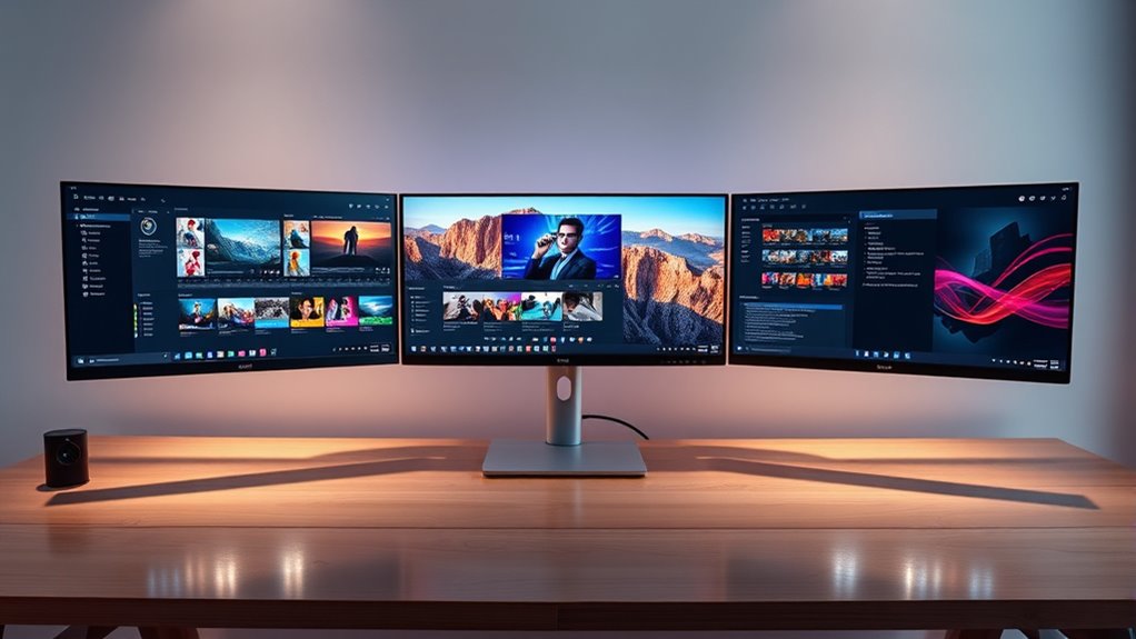 Choosing the right ultrawide monitor can transform your workflow from chaos to clarity. While some focus on immersive gaming or sleek design, I find that for video editing and multitasking, it’s about balancing sharp visuals with practical features. The best monitor isn’t just a stunning display; it’s a tool that keeps you productive and inspired. So, don’t settle for just eye-catching—opt for one that truly elevates your creative experience.
