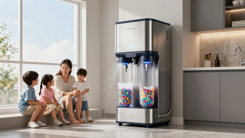 Choosing the right water softener capacity depends heavily on your household size and water usage habits. Larger families generally need a softener rated at least 48,000 grains to handle increased mineral loads. If your home has four or more bathrooms, a system rated for 72,000 grains or higher is advisable. The number of people directly impacts daily water consumption, so a household of 4-6 members typically requires a unit that regenerates less often and holds more salt and resin. Additionally, consider peak usage times, like mornings and evenings, to ensure a steady supply of soft water during high-demand periods. Proper sizing not only prevents scale buildup but also minimizes maintenance and extends the lifespan of appliances.